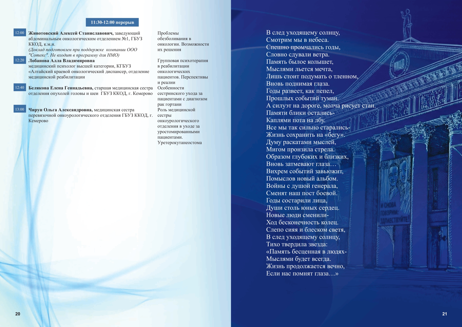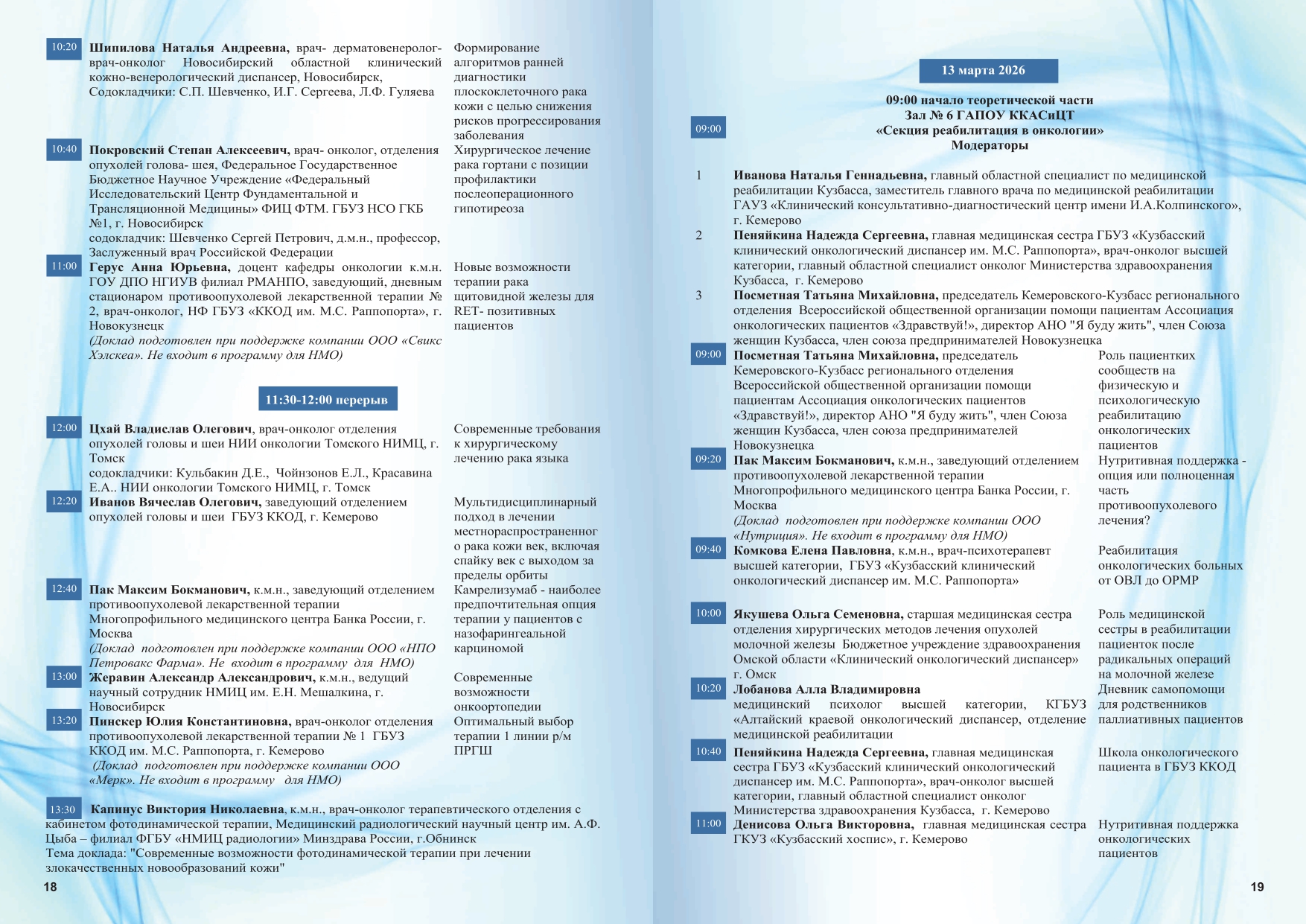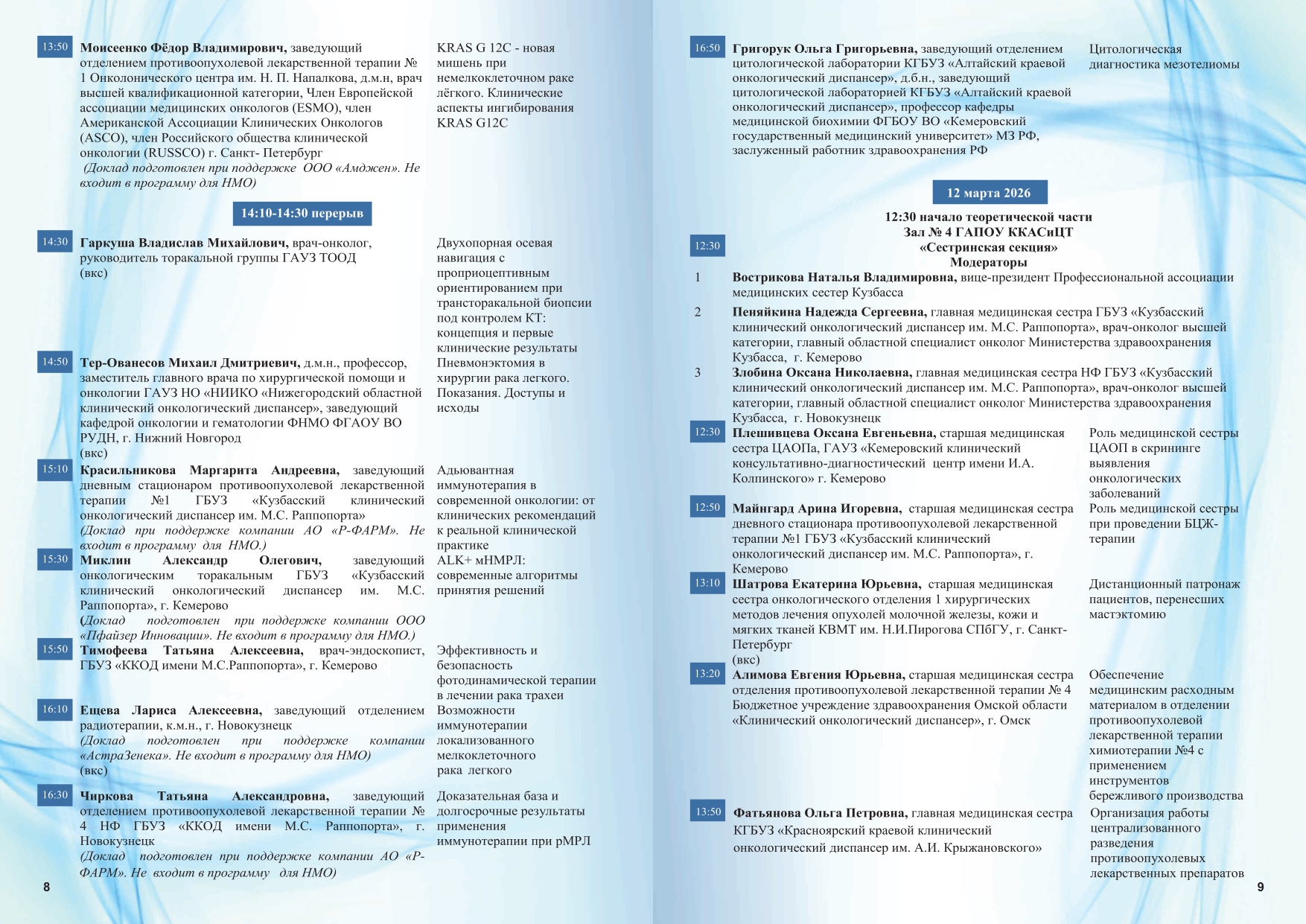 Целевая аудитория:представители медицинских учреждений Кемеровской области и других регионов, врачи-онкологи, медицинские сестры врачей – онкологов, руководители лечебных учреждений и их заместители, назначенные ответственными за оказание медицинской помощи по профилю «онкология», врачи других специальностей и средние медработники.